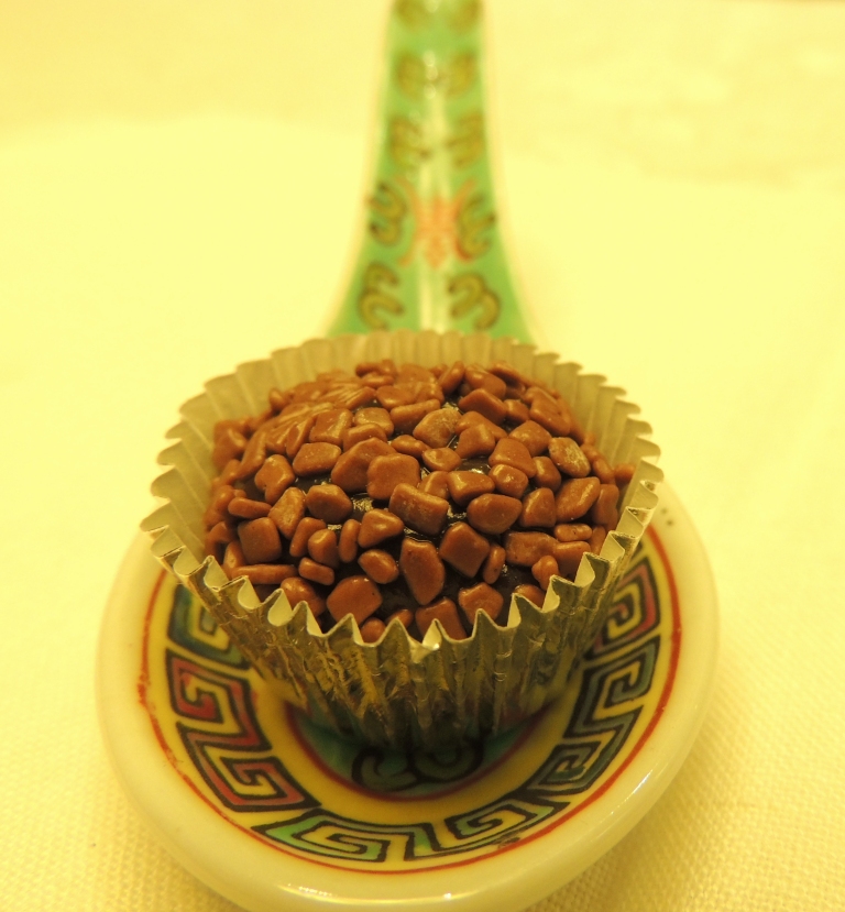 For the filling and topping, I chose a gourmet version of a very traditional Brazilian recipe for a chocolate “fudge” called brigadeiro. I made it a bit less thick than the recipe calls for so that I could pipe it into a swirl on top of my cupcakes, but it is usually rolled into small balls and then coated with chocolate sprinkles or sugar.